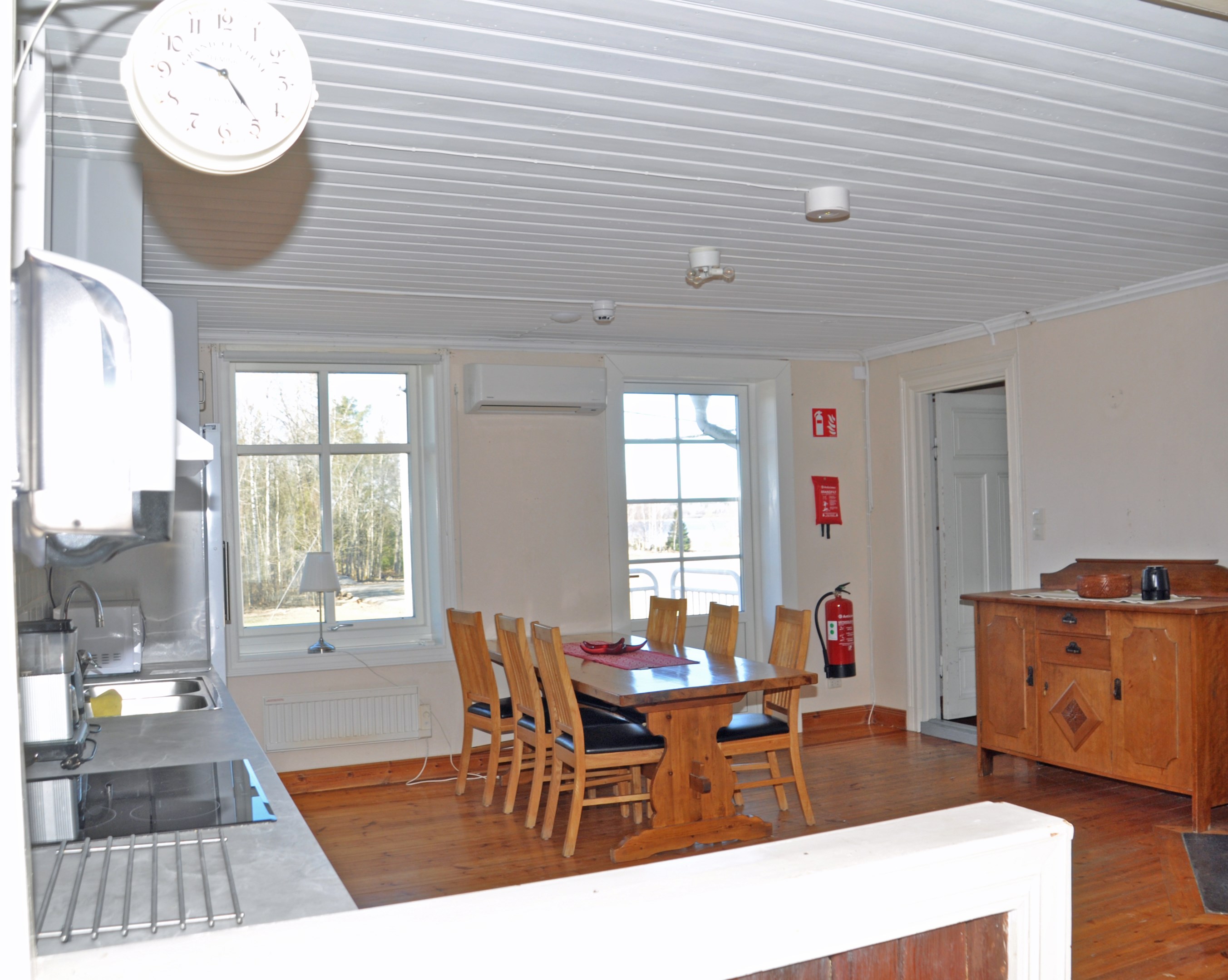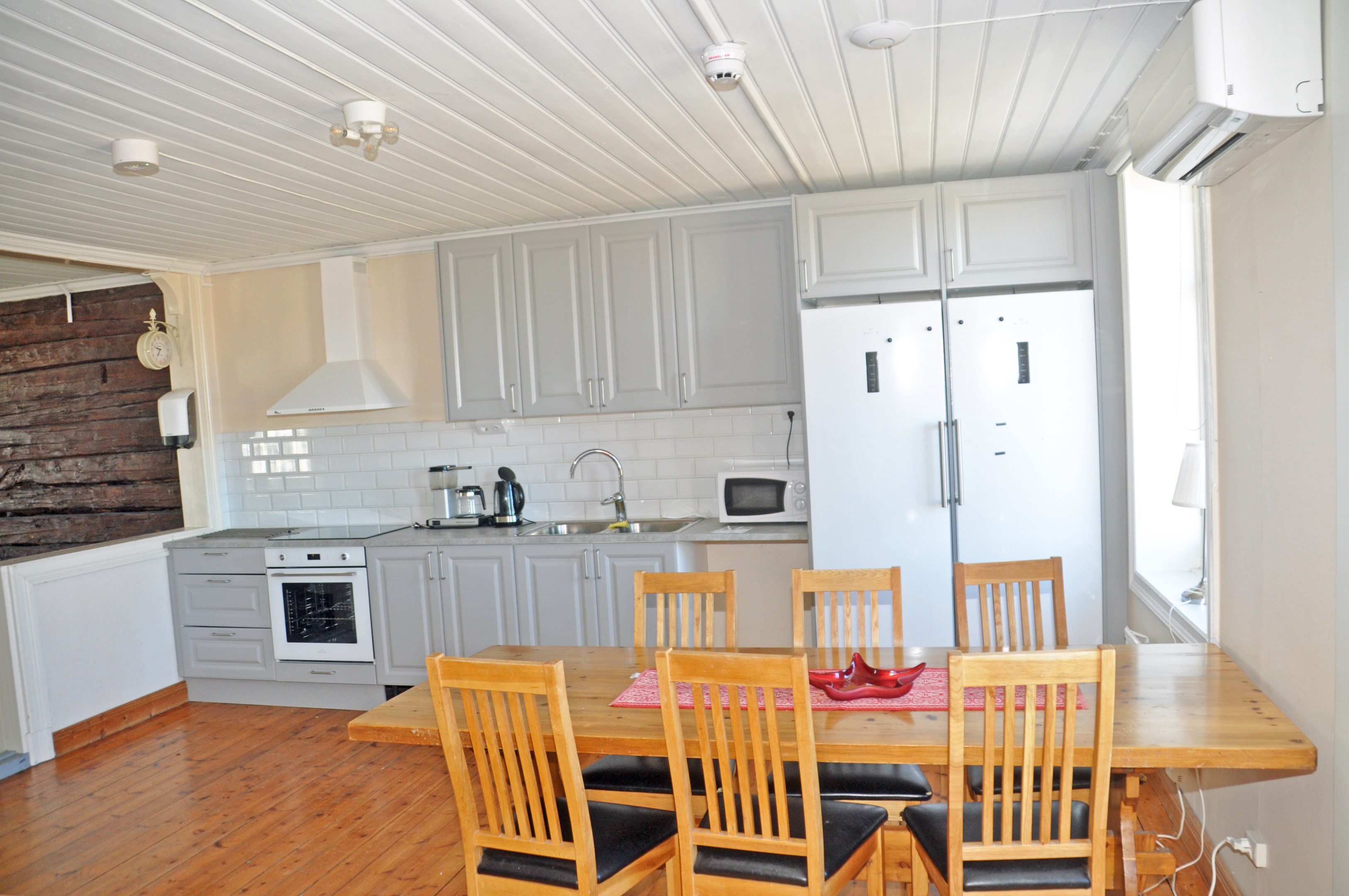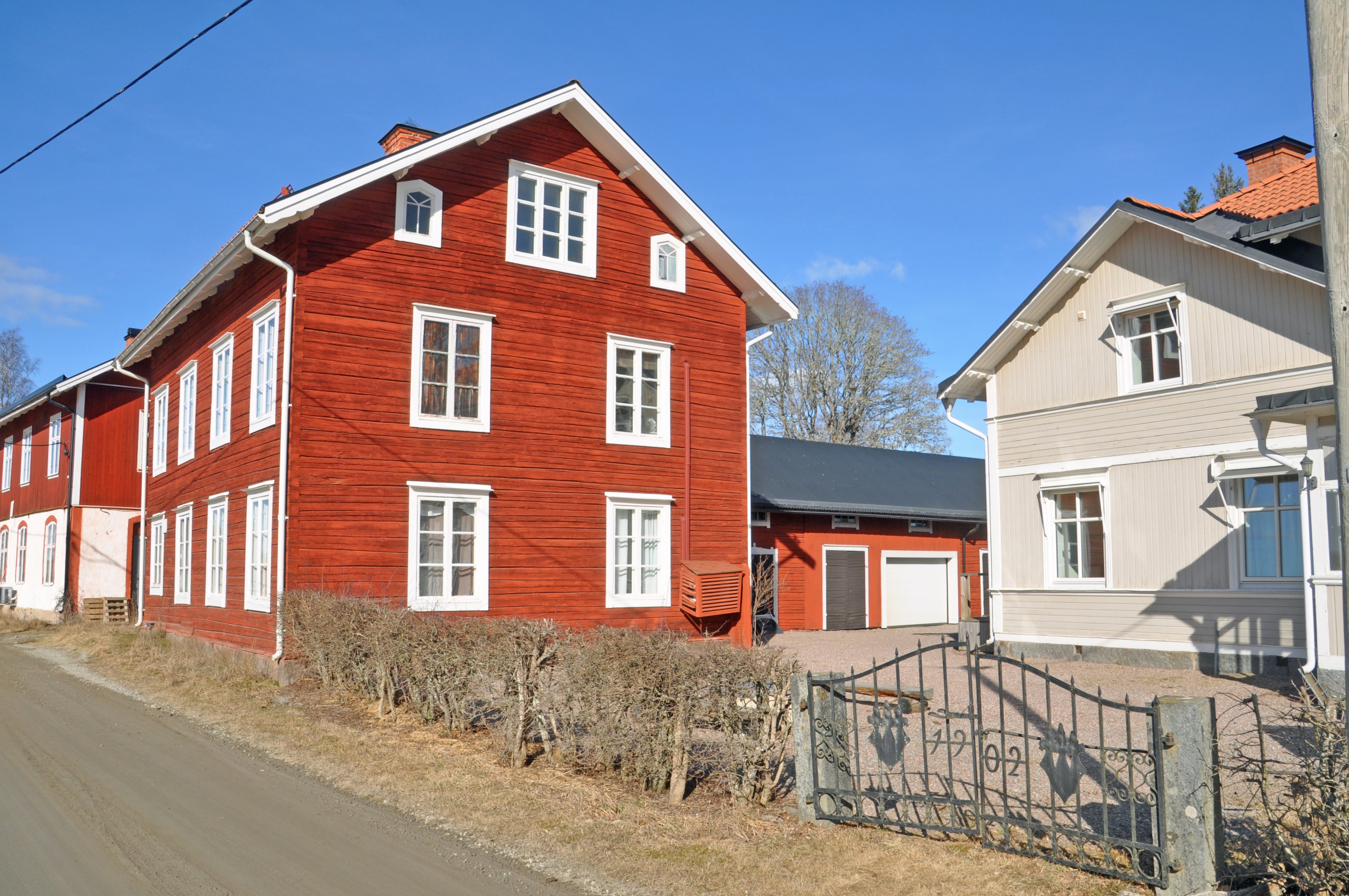 KÄLLARE 2 st källarrum. Fönster. Ingång utifrån. BOTTENVÅNING Entré hall. Rum. **** Kök med 4 pl elspis, spisfläkt och kyl/frys. Vardagsrum med braskamin (Contura) och luftvärmepump. Duschrum med WC, tvättställ och dusch. Sovrum med kakelugn. **** Hall med sep. ingång med trappa till övervåning. Stort hygienutrymme med WC, tvättställ dusch, tvättbänk, tvättmaskin och VVB. Rum. **** Lägenhet med 2 r o k och med 2 st egna entréer. Stort vardagsrum med braskamin (Contura) och luftvärmepump Hall. Kök med induktionshäll, spisfläkt, sep ugn, kyl/frys och diskmaskin. Sovrum med kakelugn. Duschrum med WC, tvättställ och dusch. ÖVERVÅNING Stor hall. **** Kök med hällspis, spisfläkt, kyl, frys. I köket finns kakelugn och utgång till brandtrappa. Rum med kakelugn. Sal med trägolv och kakelugn. **** Hall med trappa från bottenvåning. Kök med hällspis, spisfläkt, kyl, frys och diskmaskin. Vardagsrum med trägolv och kakelugn. Sovrum. Duschrum med WC, tvättställ och dusch. **** Hall. Kök med hällspis, spisfläkt, sep. ugn och kyl/frys. Duschrum med WC, tvättställ och dusch. Sovrum. Vardagsrum. OINREDD VIND I detta hus finns 5 st lägenheter, allmänna hallar och allmänt hygienutrymme. RÖTT TIMMERHUS, BRUTTOAREA CA 170 KVM BOTTENVÅNING Hall. Gammalt kök med vedspis och bakugn. Kammare med trägolv och kakelugn. Rum med braskamin (Contura), diskbänk med vatten. Sep. rum med ingång utifrån som Hassmyra vatten- och avloppsförening använder för vattenförsörjningen i byn (vatten utrustning, pumpar m.m). Kontroller och översyn skötts av utsedda personer i Hassmyra vatten- och avloppsförening. ÖVERVÅNING Gammalt kök med vedspis, luftvärmepump. Kammare med kakelugn. Sal med braskamin (Handöl). Toalett med WC och tvättställ. OINREDD VIND "Energideklaration på det röda timmerhuset: Deklarationen utförd 2025-04-04, energiprestanda primärenergital 114 kWh/kvm och år, energiförbrukning atemp 71 kWh/kvm och år, energiklass E."